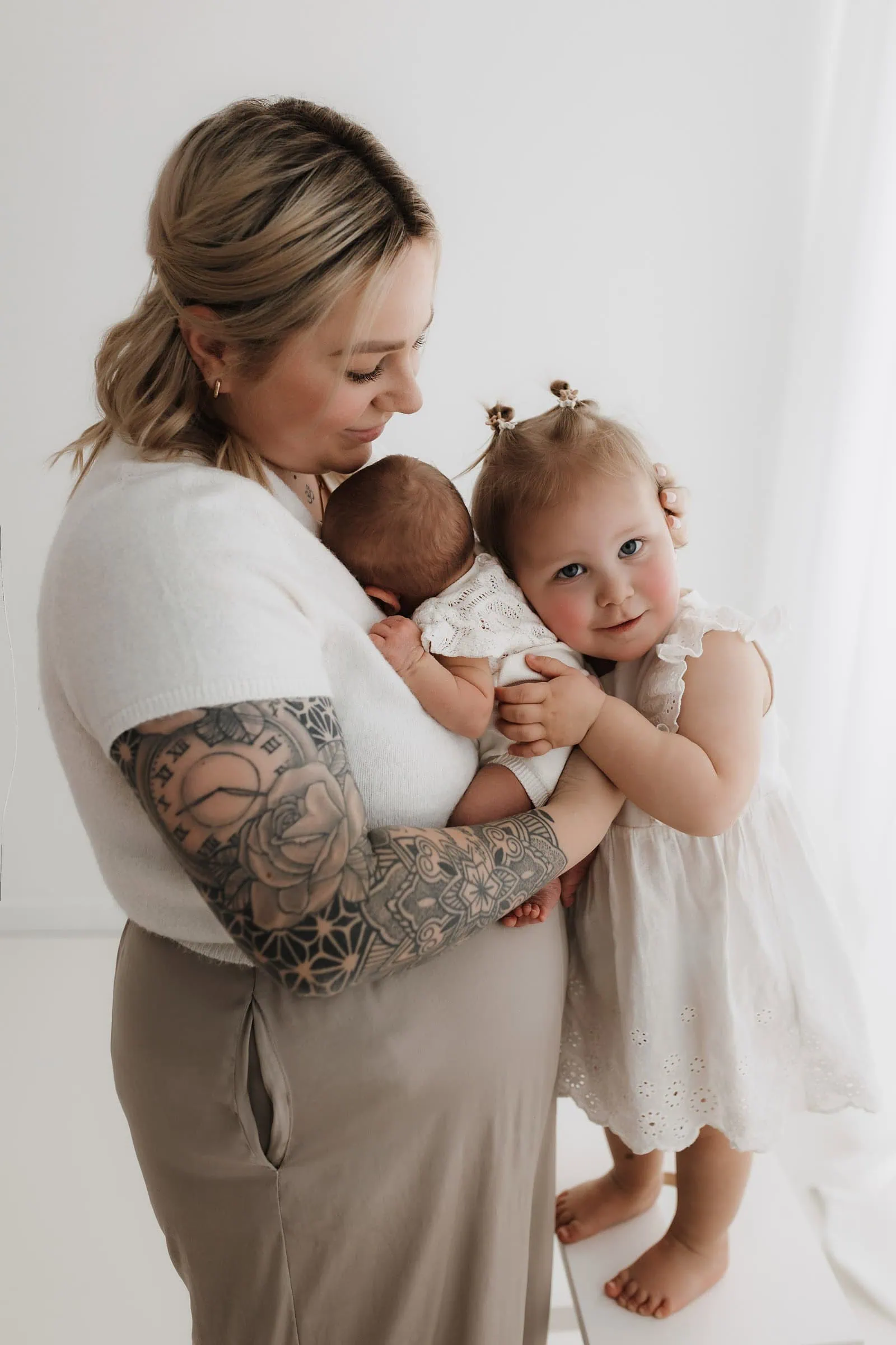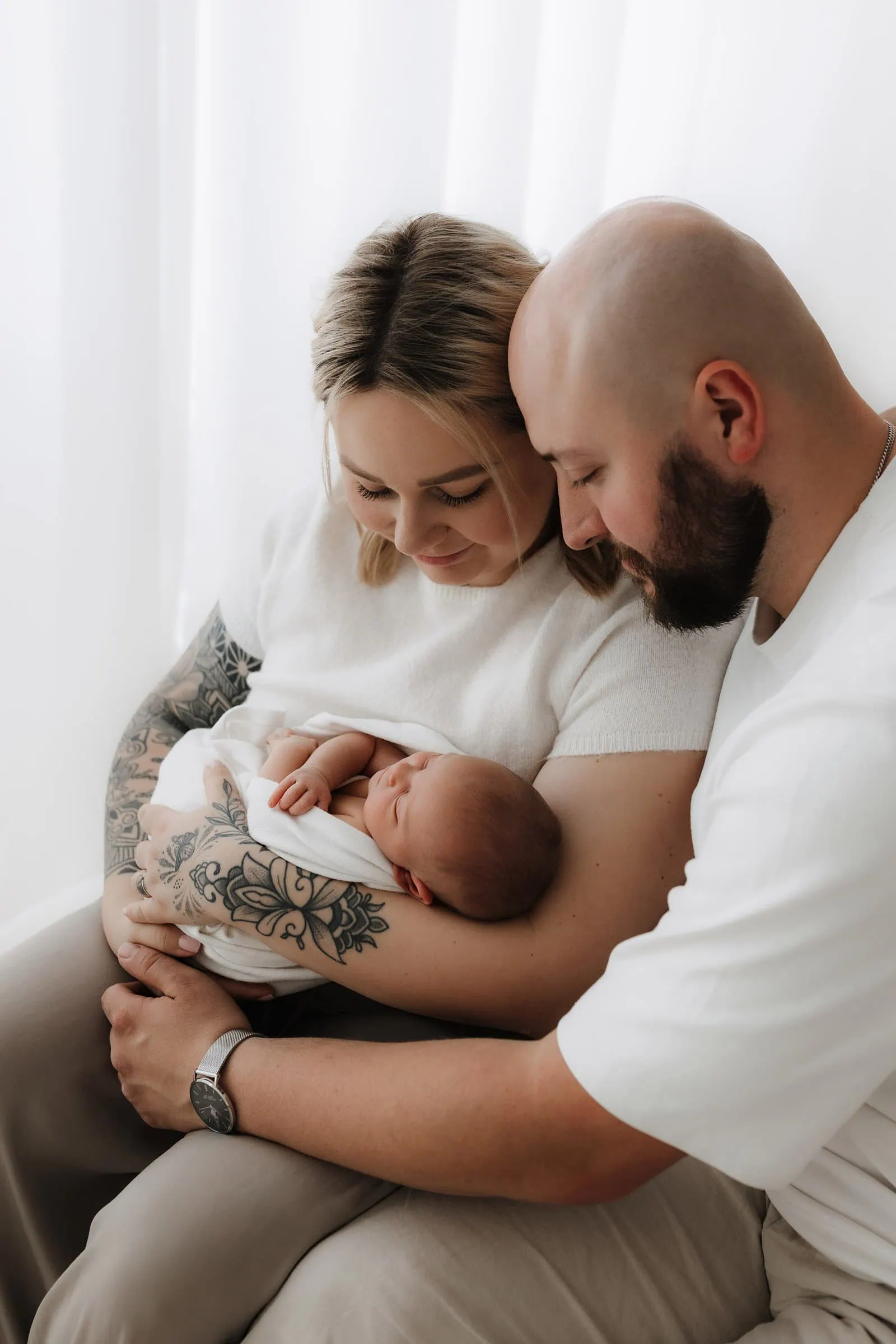 Ja, natürlich! Neben wunderschönen Einzelporträts deines Babys entstehen auch liebevolle Aufnahmen mit Mama und Papa, dem Geschwisterkind und der ganzen Familie zusammen. So entsteht eine vielseitige Mischung aus Bildern in verschiedenen Konstellationen – von innigen Momenten zwischen Eltern und Baby bis hin zu herzlichen Geschwisteraufnahmen. So halten wir die besondere Verbundenheit eurer Familie für immer fest.