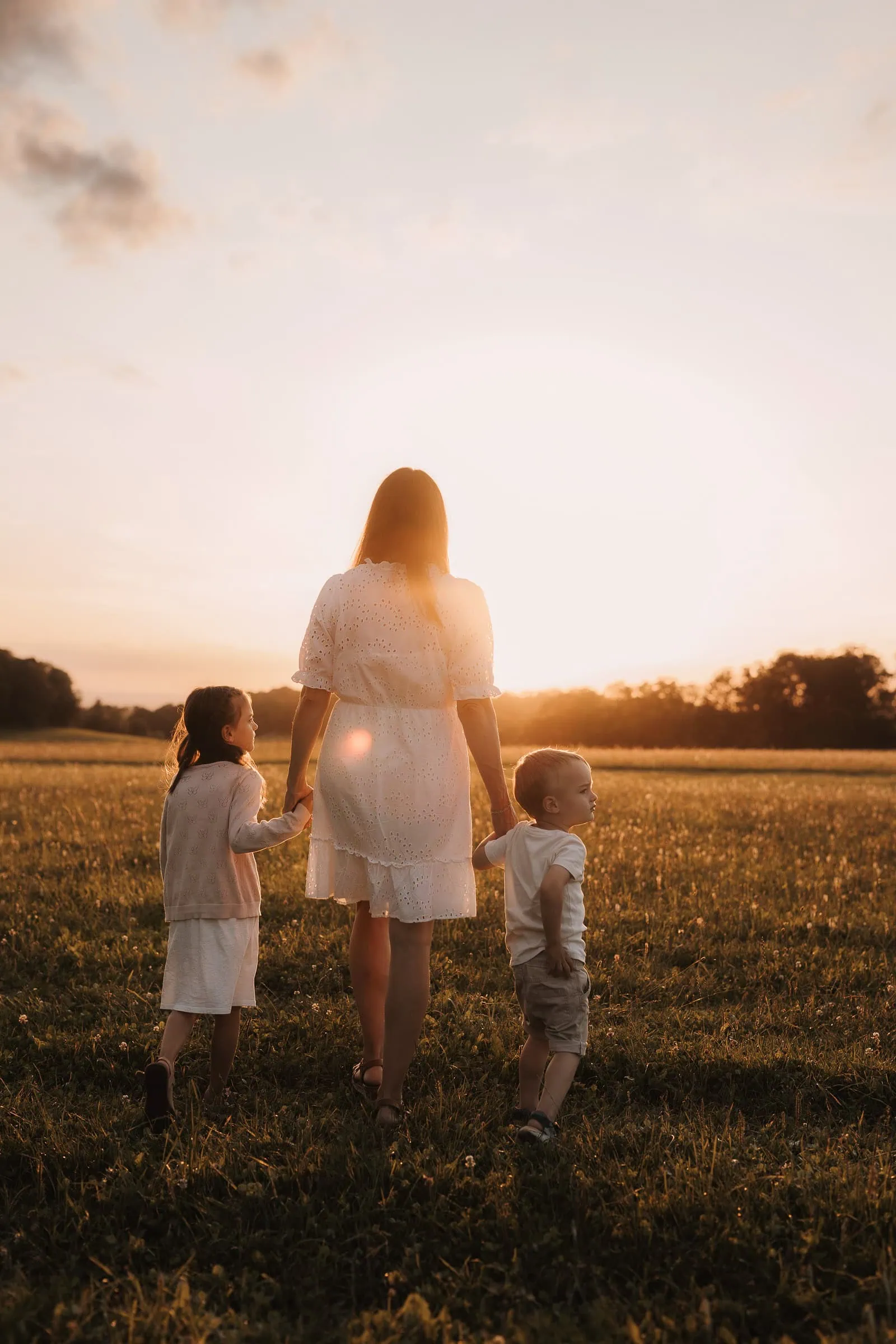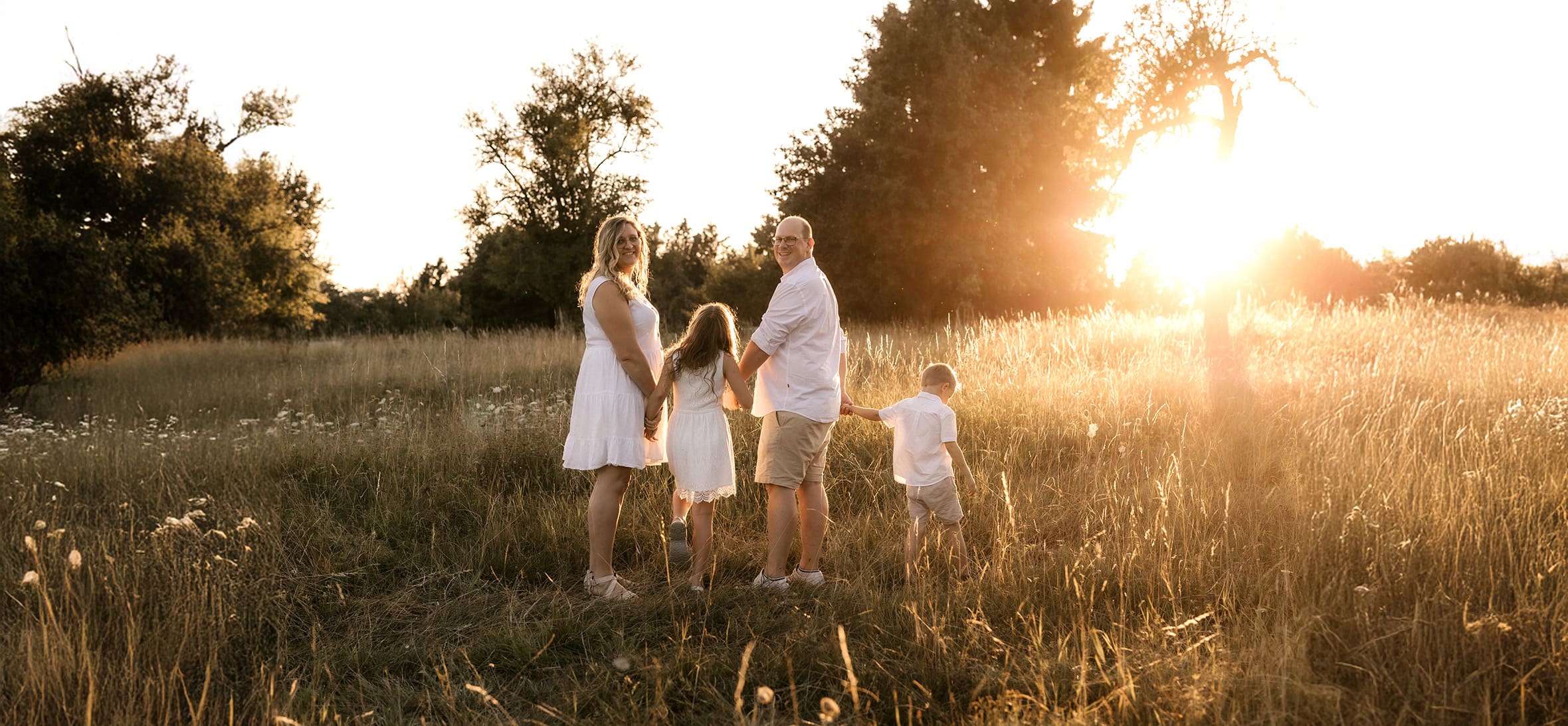 Familienshootings finden bei mir immer draußen in der Natur statt – dort entstehen die schönsten, authentischsten Aufnahmen voller Lebendigkeit und Emotionen. Ich fotografiere am liebsten am Abend zum Sonnenuntergang, da das Licht dann besonders weich und stimmungsvoll ist.